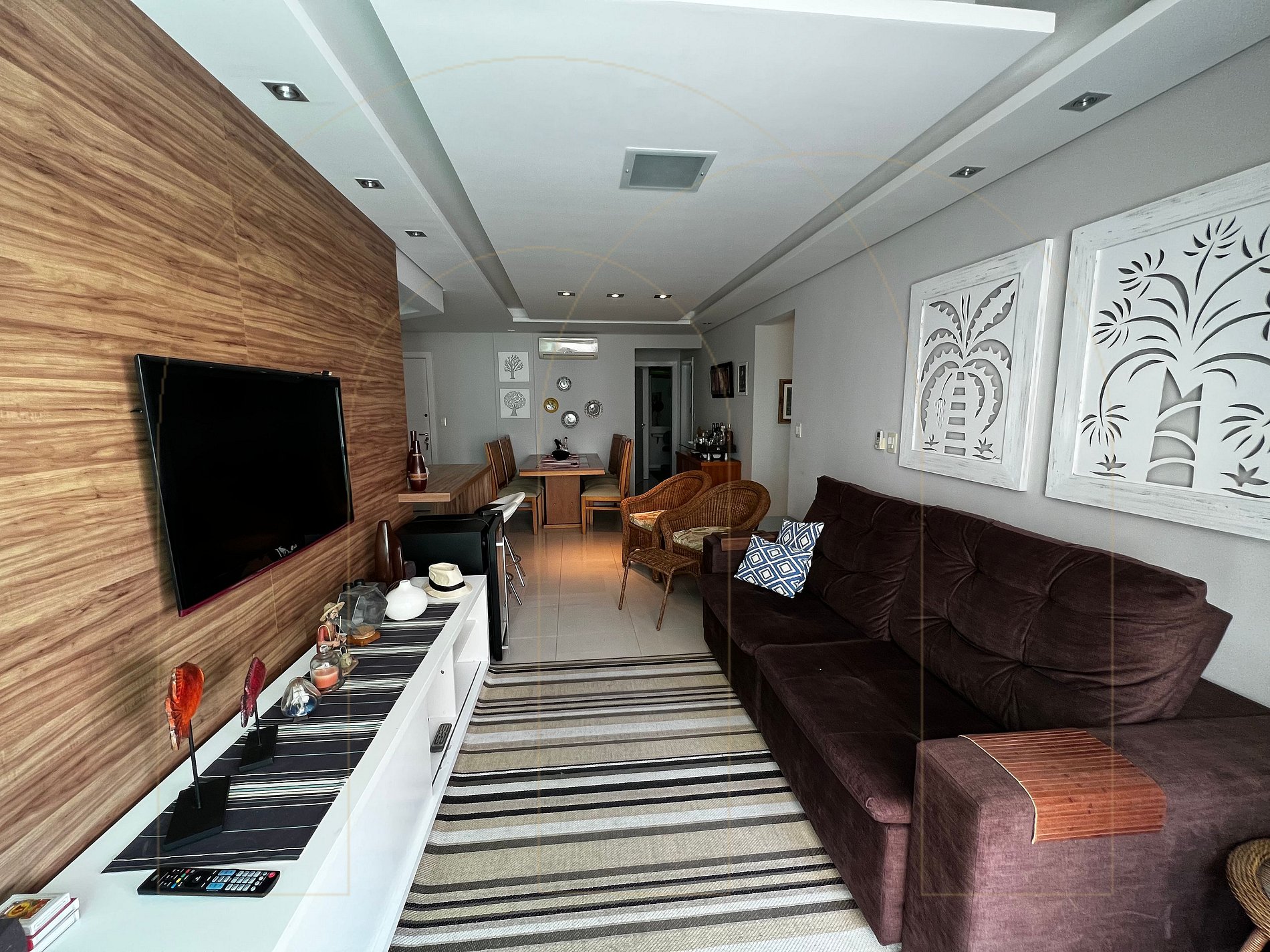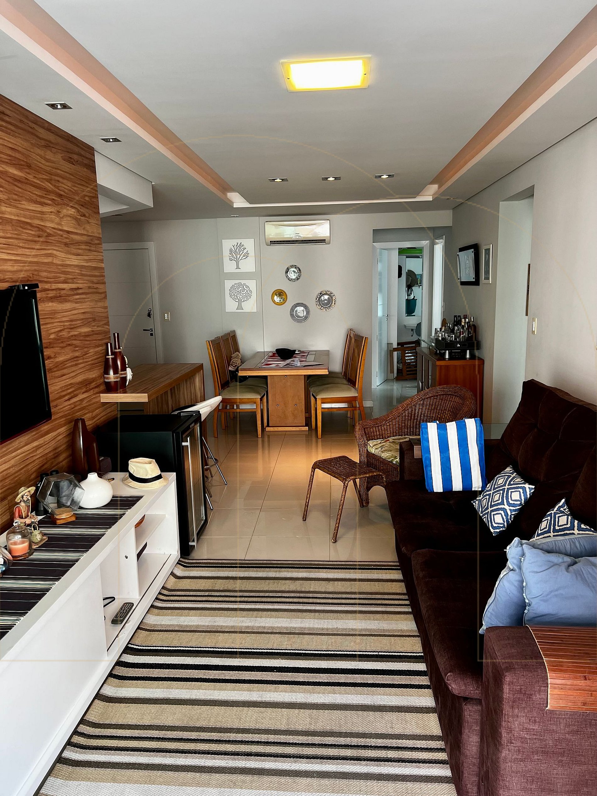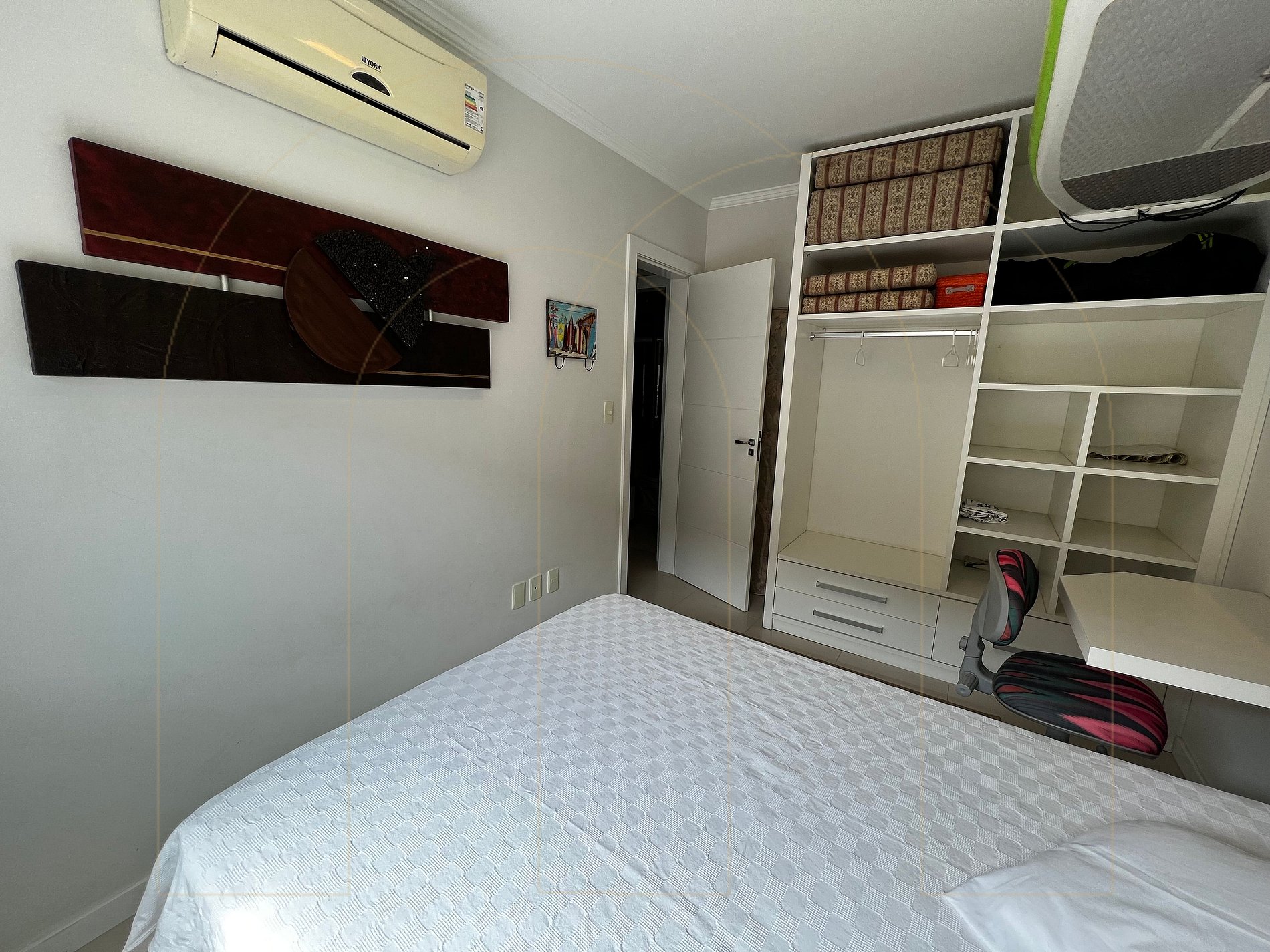 Apartamento de 03 dormitórios, sendo 01 suíte, todos quartos com ar condicionado, 1 banheiro social completo, cozinha completa, área de serviço com máquina de lavar, sala com televisor, sacada com churrasqueira. Garagem privativa para 01 automóvel, wi-fi.