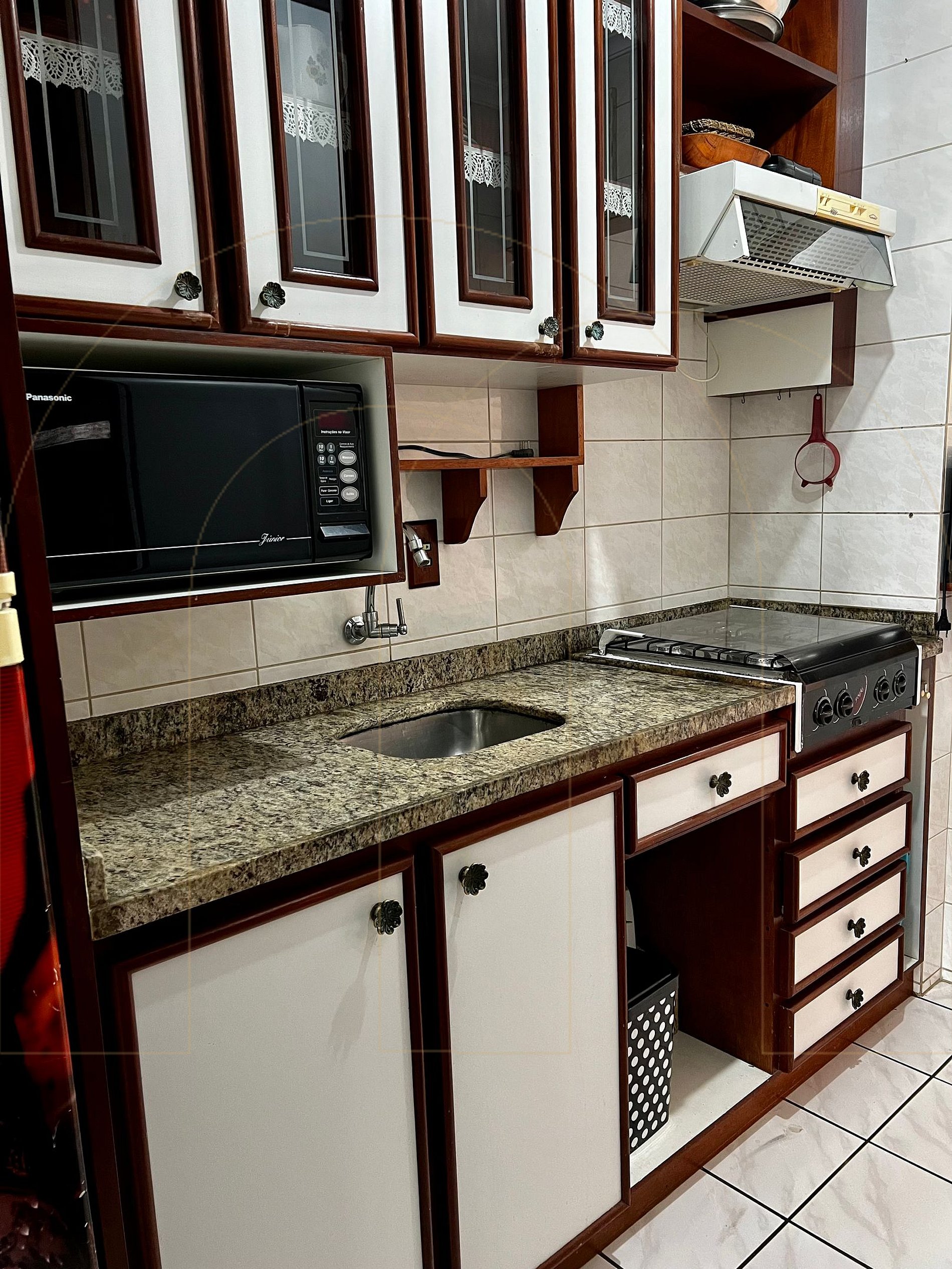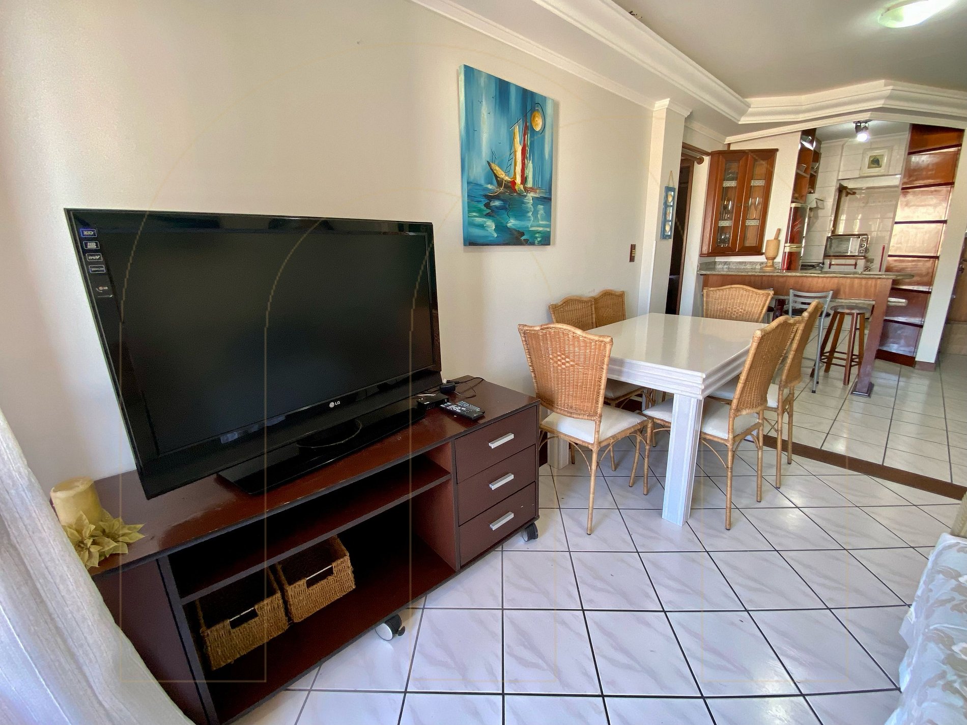 Apartamento 02 dormitórios com ar condicionado sendo 01 suite, 02 banheiros, cozinha completa, área de serviço com máquina de lavar, sala de estar com televisor, sacada com churrasqueira.