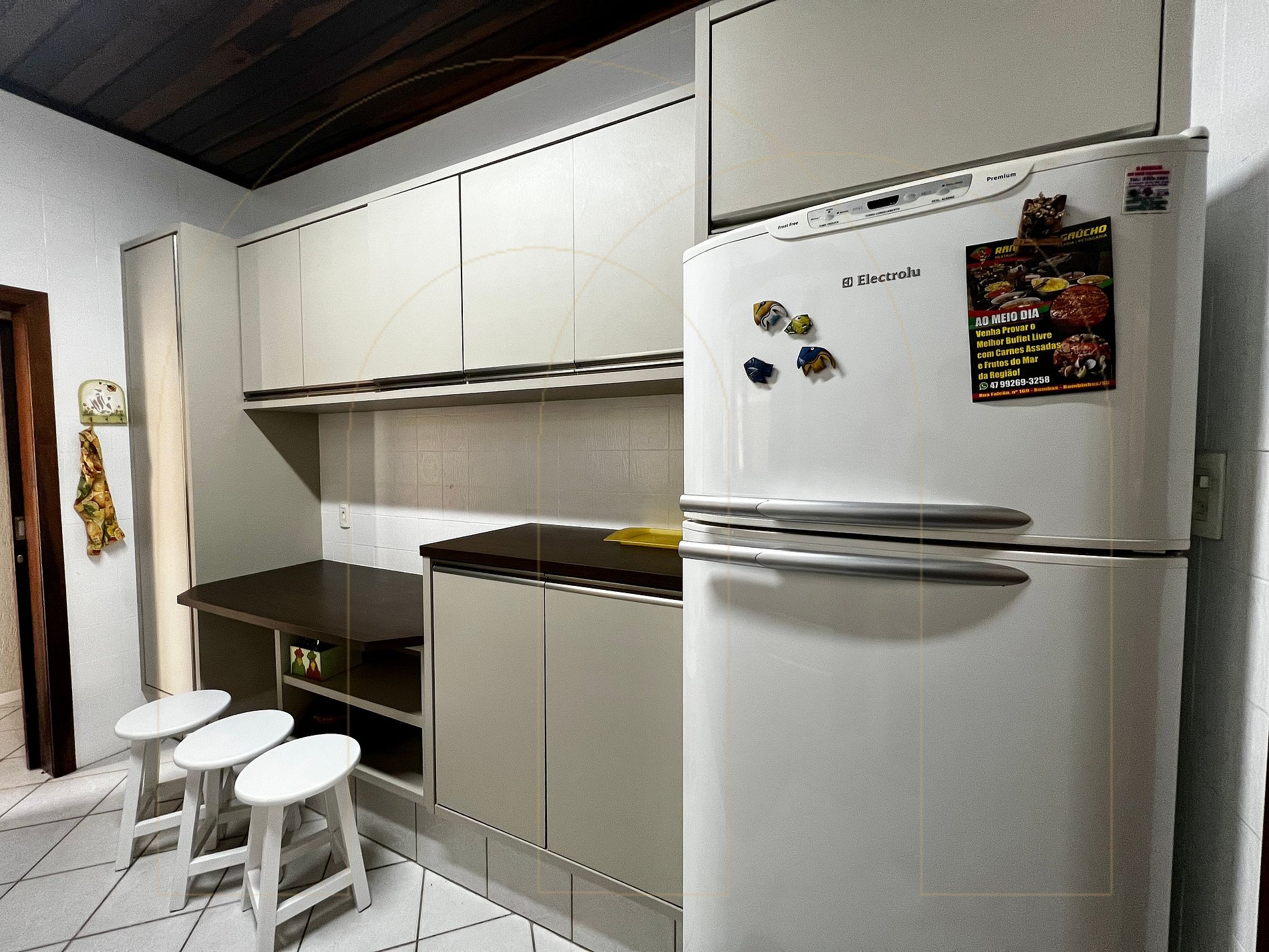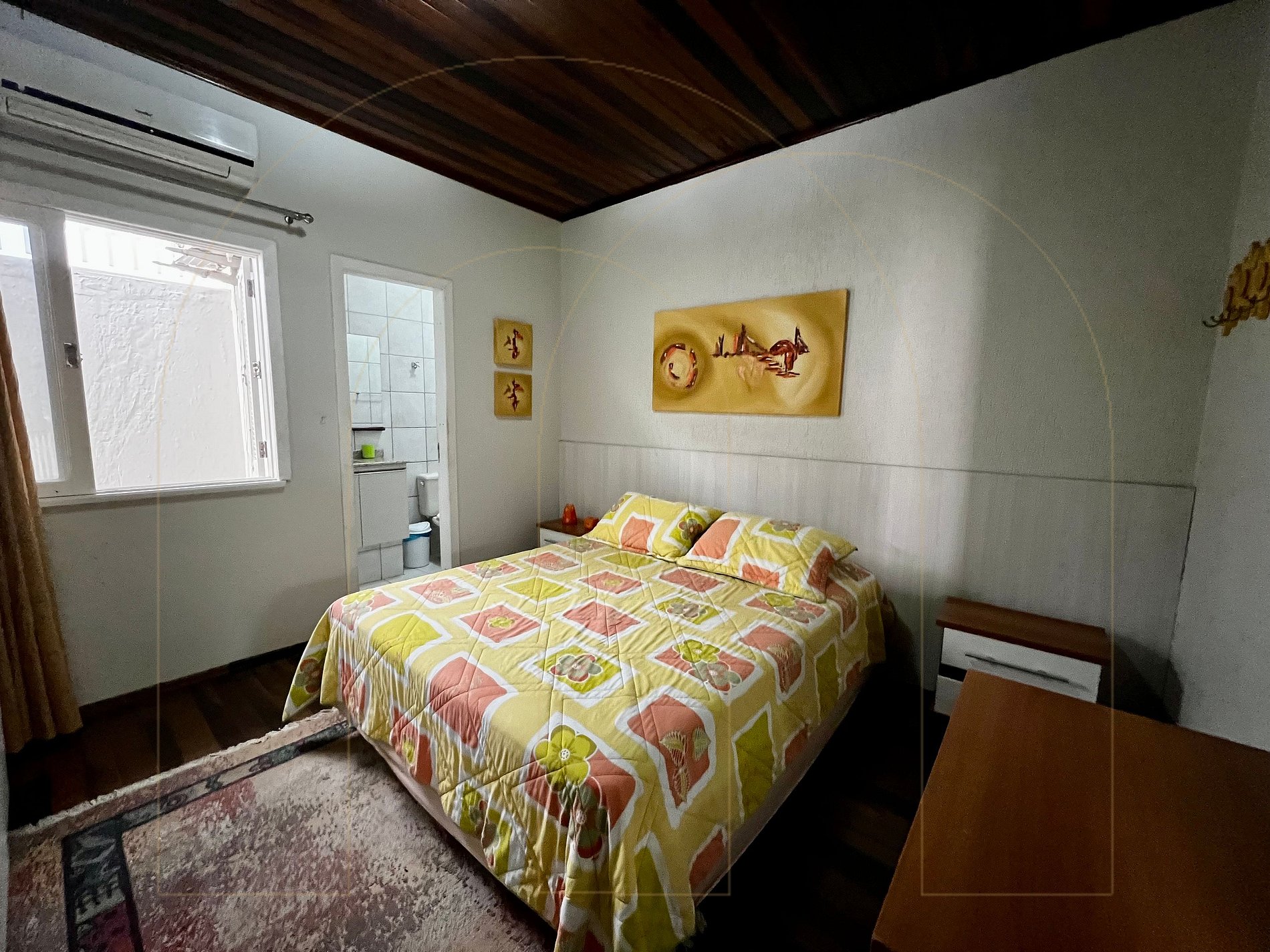 Casa de 04 dormitórios com Ar condicionado, 03 banheiros, cozinha, sala de jantar, sala de estar com televisor.