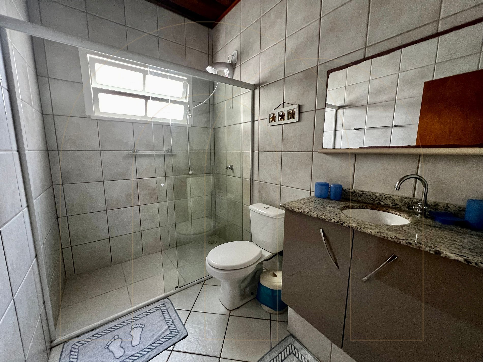 Casa de 04 dormitórios com Ar condicionado, 03 banheiros, cozinha, sala de jantar, sala de estar com televisor.