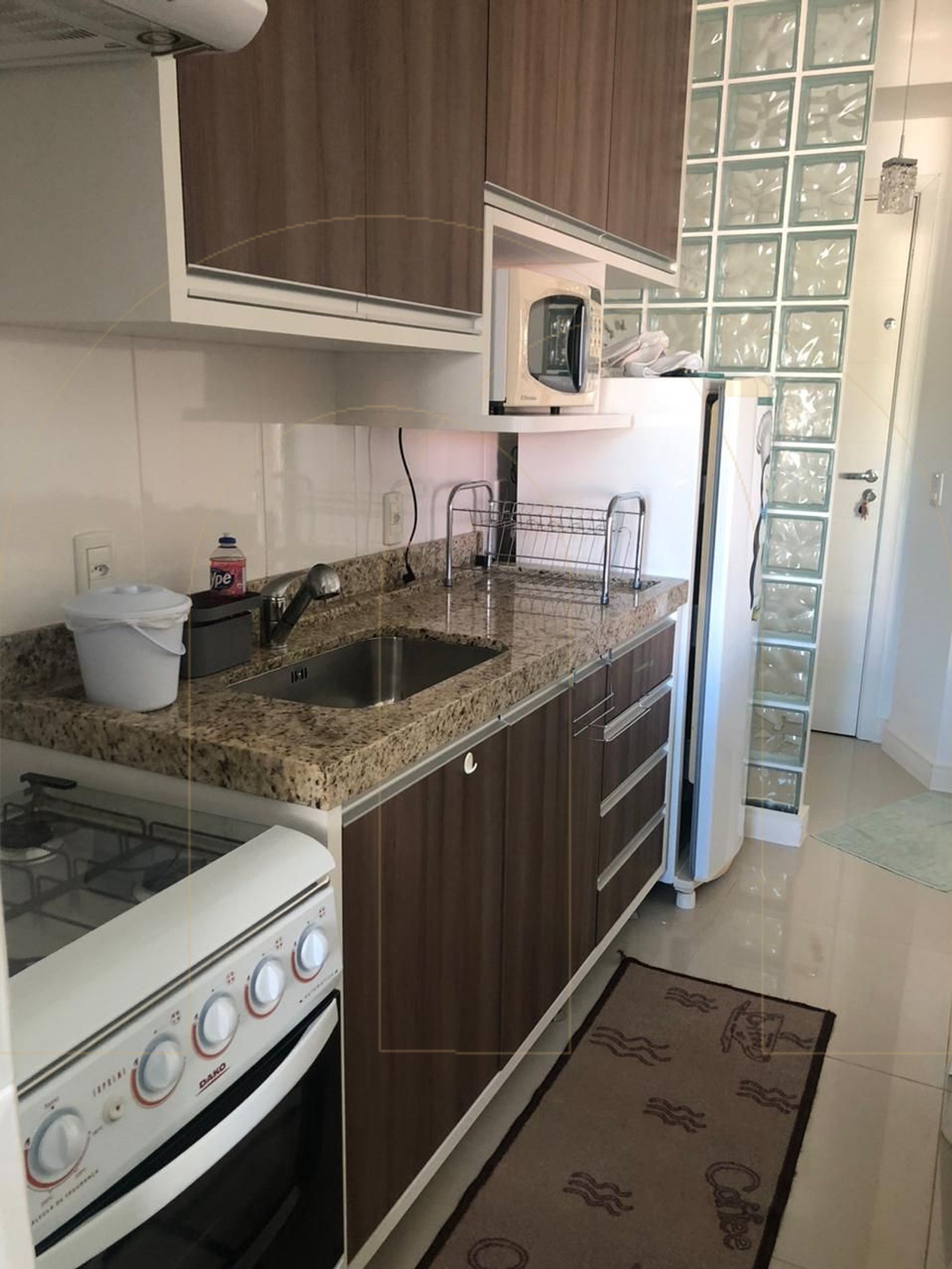 Sala de estar e jantar integradas, Sacada ampla com churrasqueira, Cozinha completa, Área de serviço e Garagem privativa para 01 automóvel.