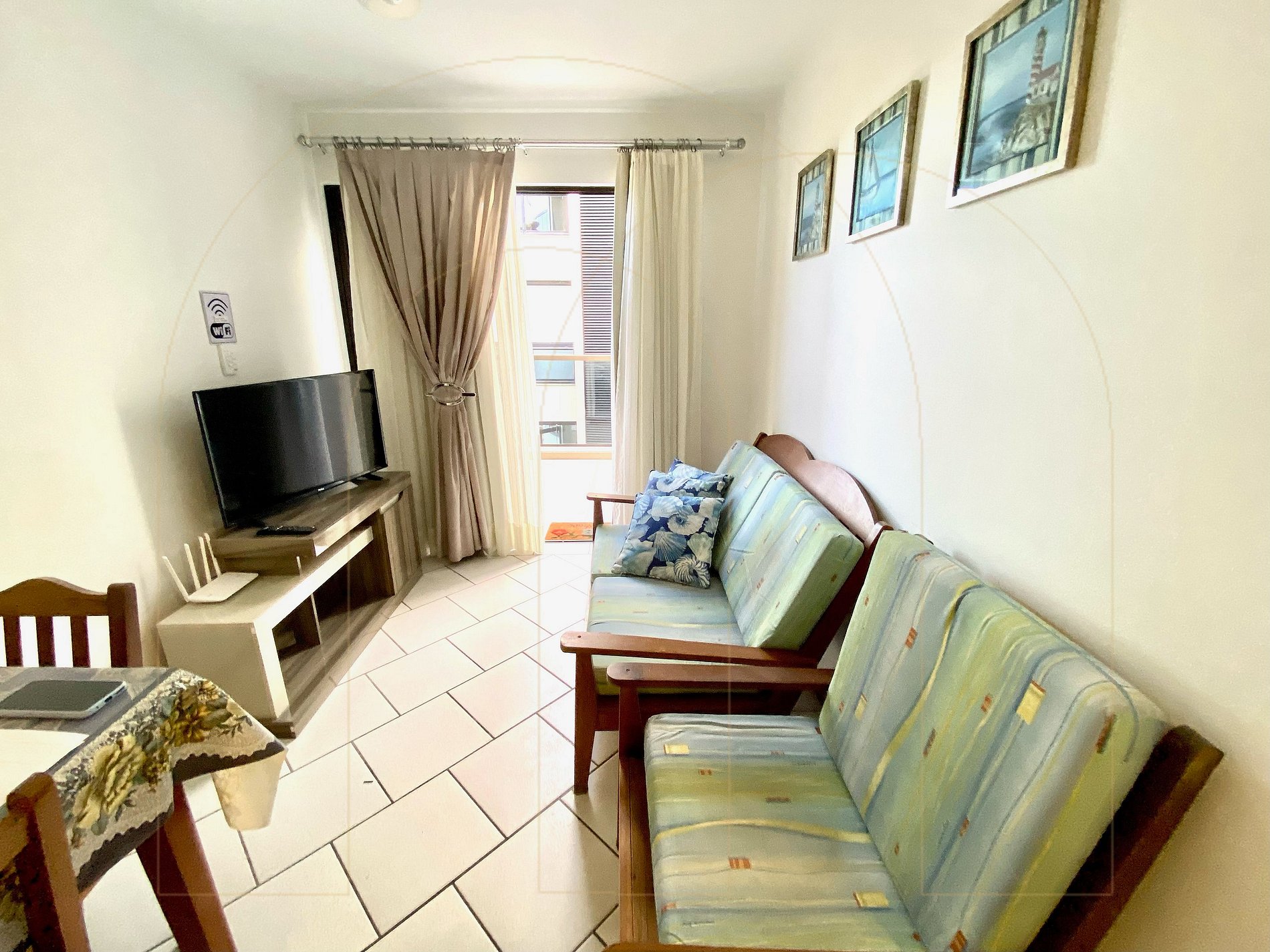 Cobertura de 02 dormitórios com ar condicionado sendo 01 suíte, 02 banheiros, cozinha completa, área de serviço com máquina de lavar, sala de estar com televisor, sacada com churrasqueira.