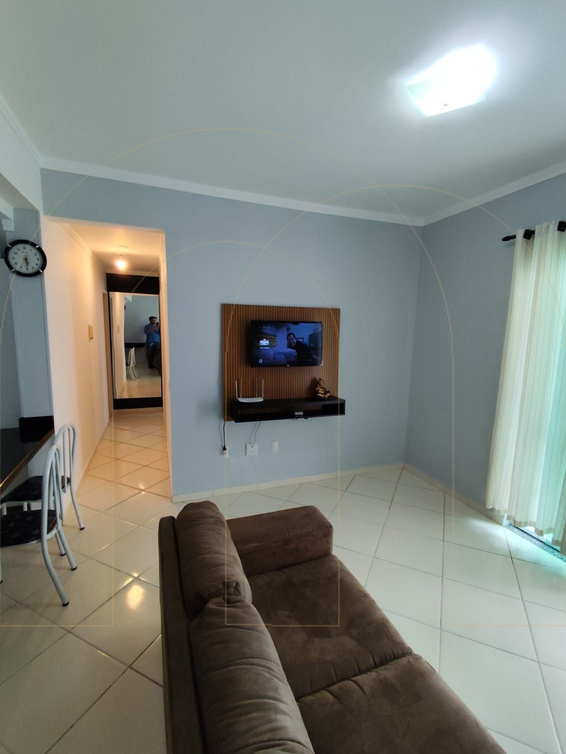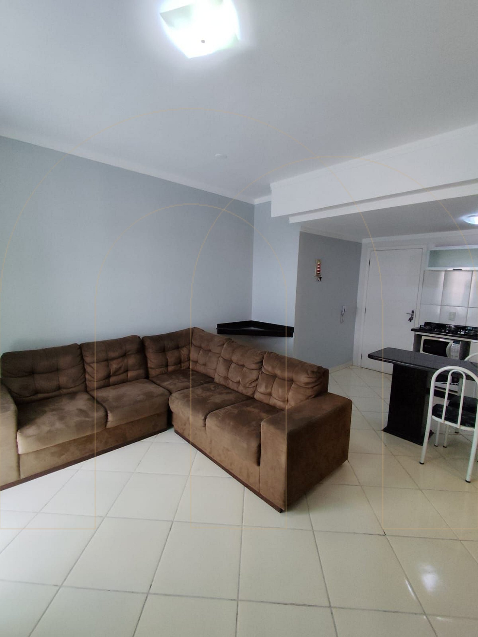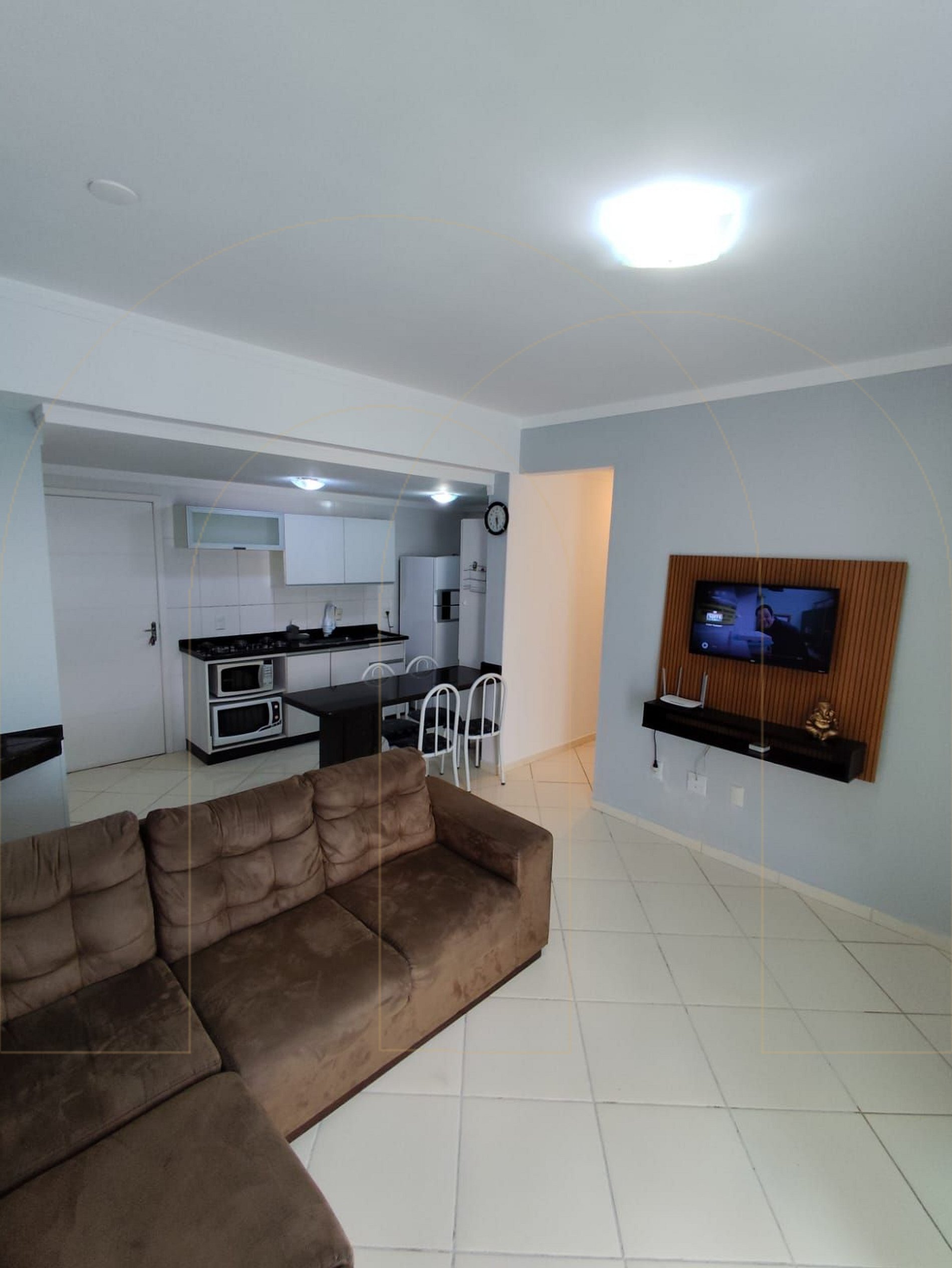- 1 sala com sofá cama e TV , integrada com cozinha completa