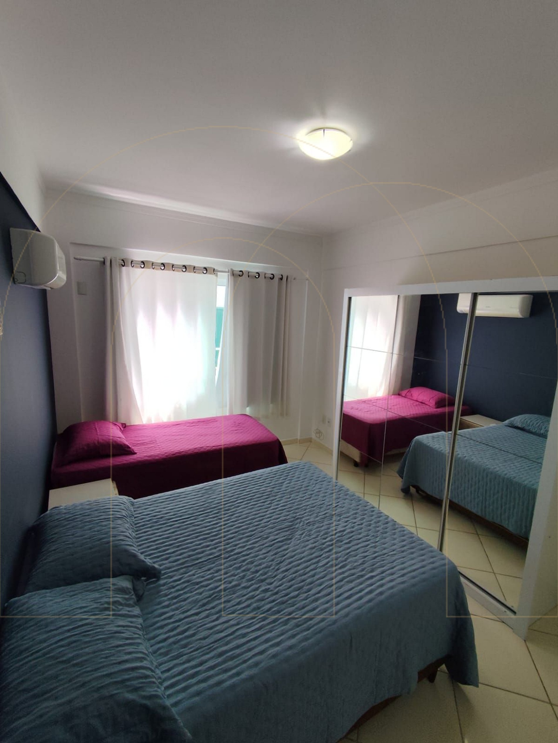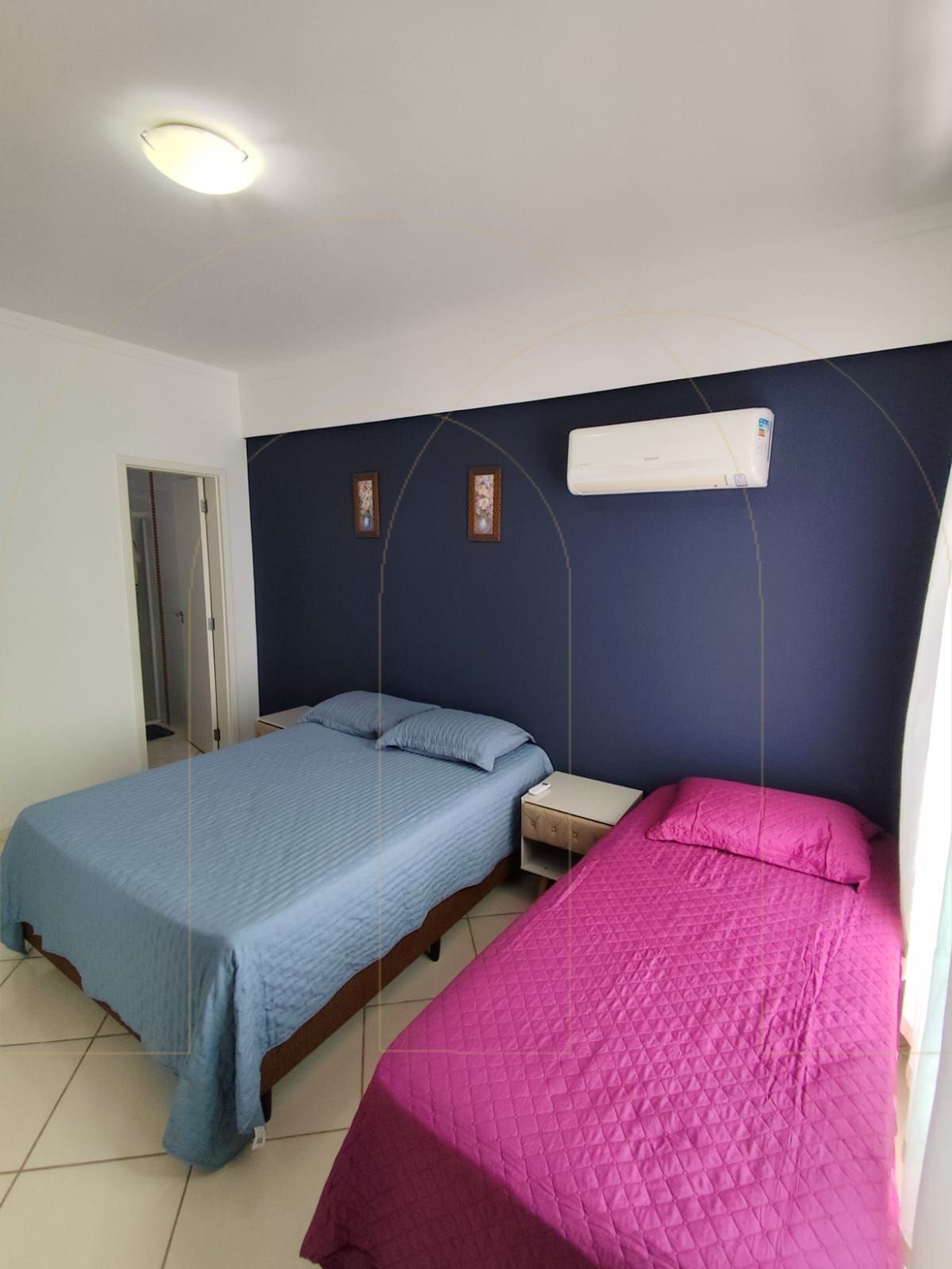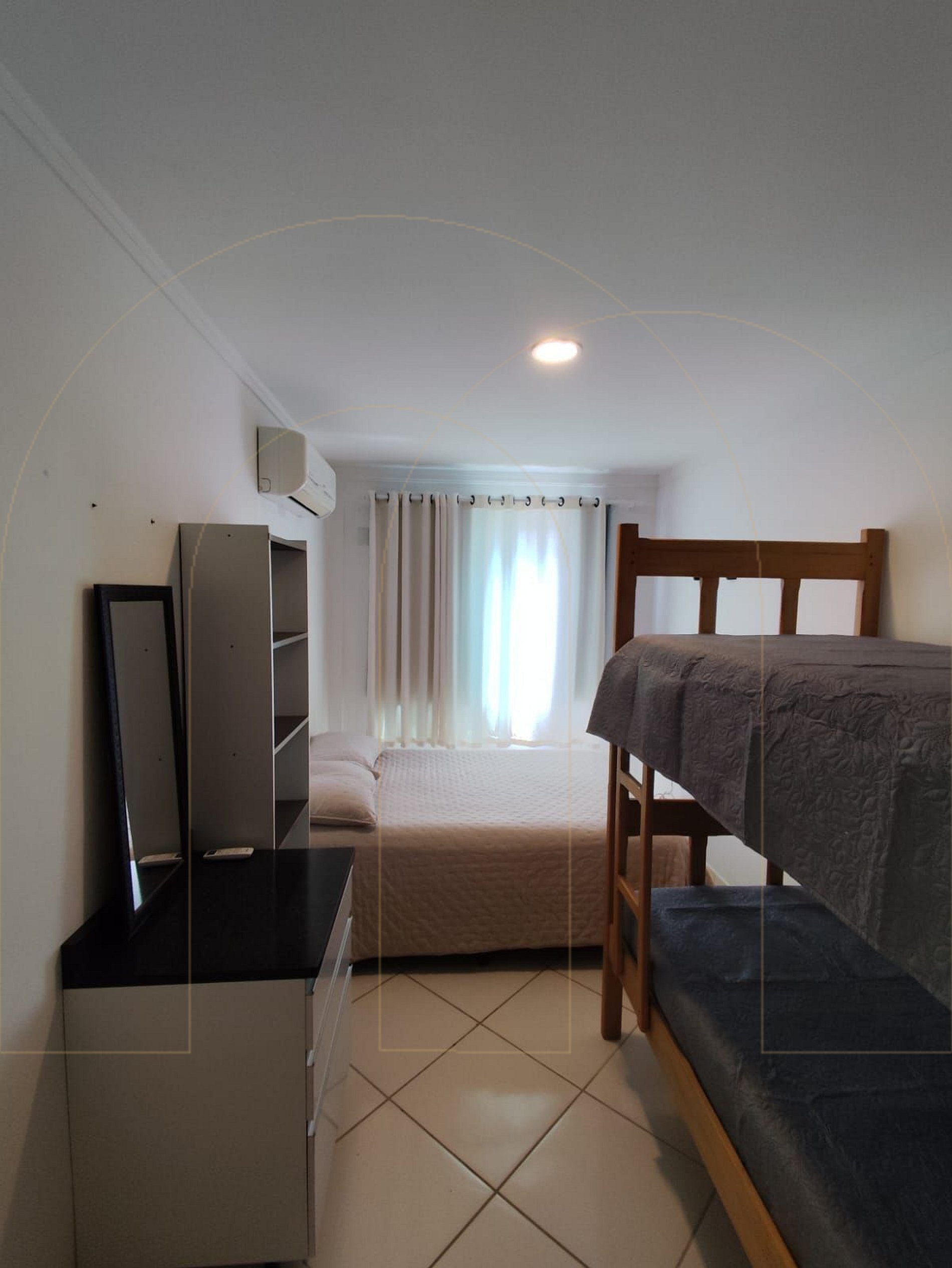 - 1 quarto com 1 beliche, q cama de casal e ar condicionado.