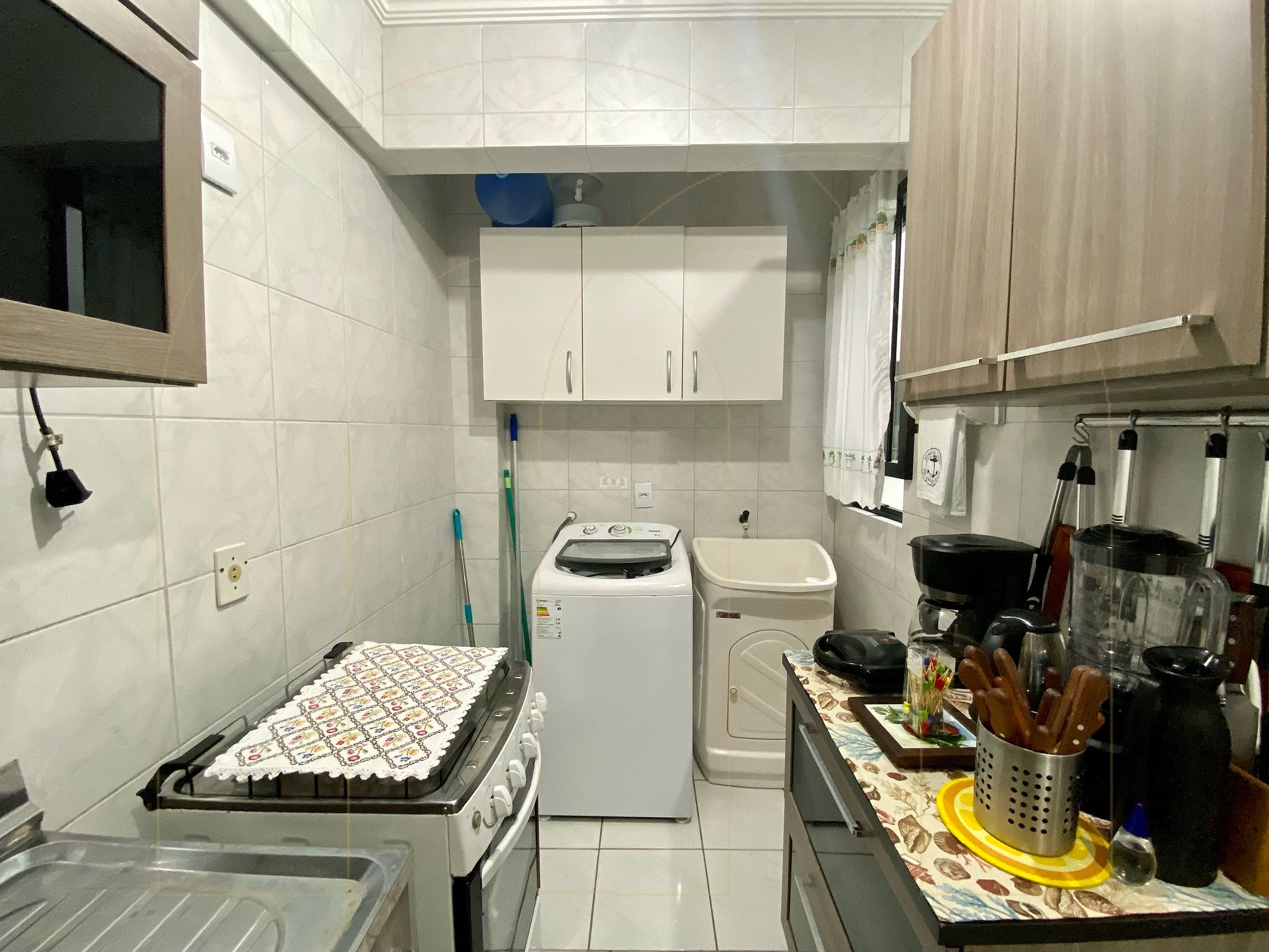 Apartamento de 02 dormitórios com Ar condicionado sendo 01 suíte, 02 banheiros, cozinha completa, sala de estar com televisor, máquina de lavar, sacada com churrasqueira, garagem privativa para 01 automóvel, Wi-fi.