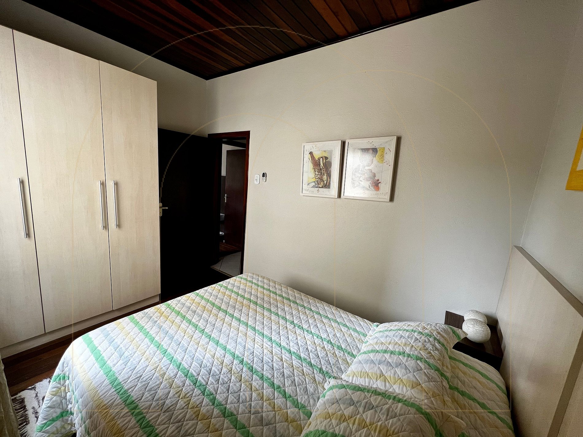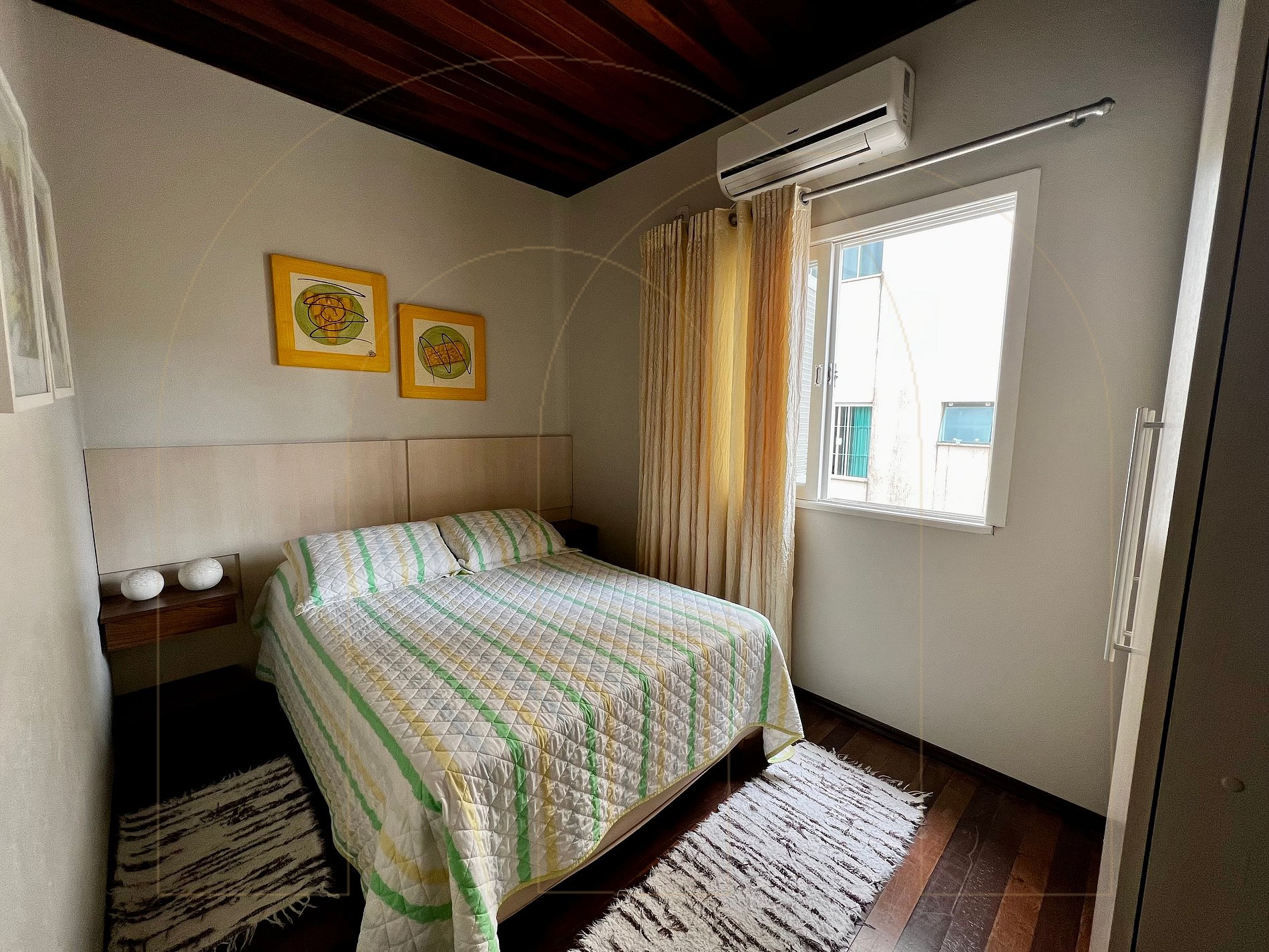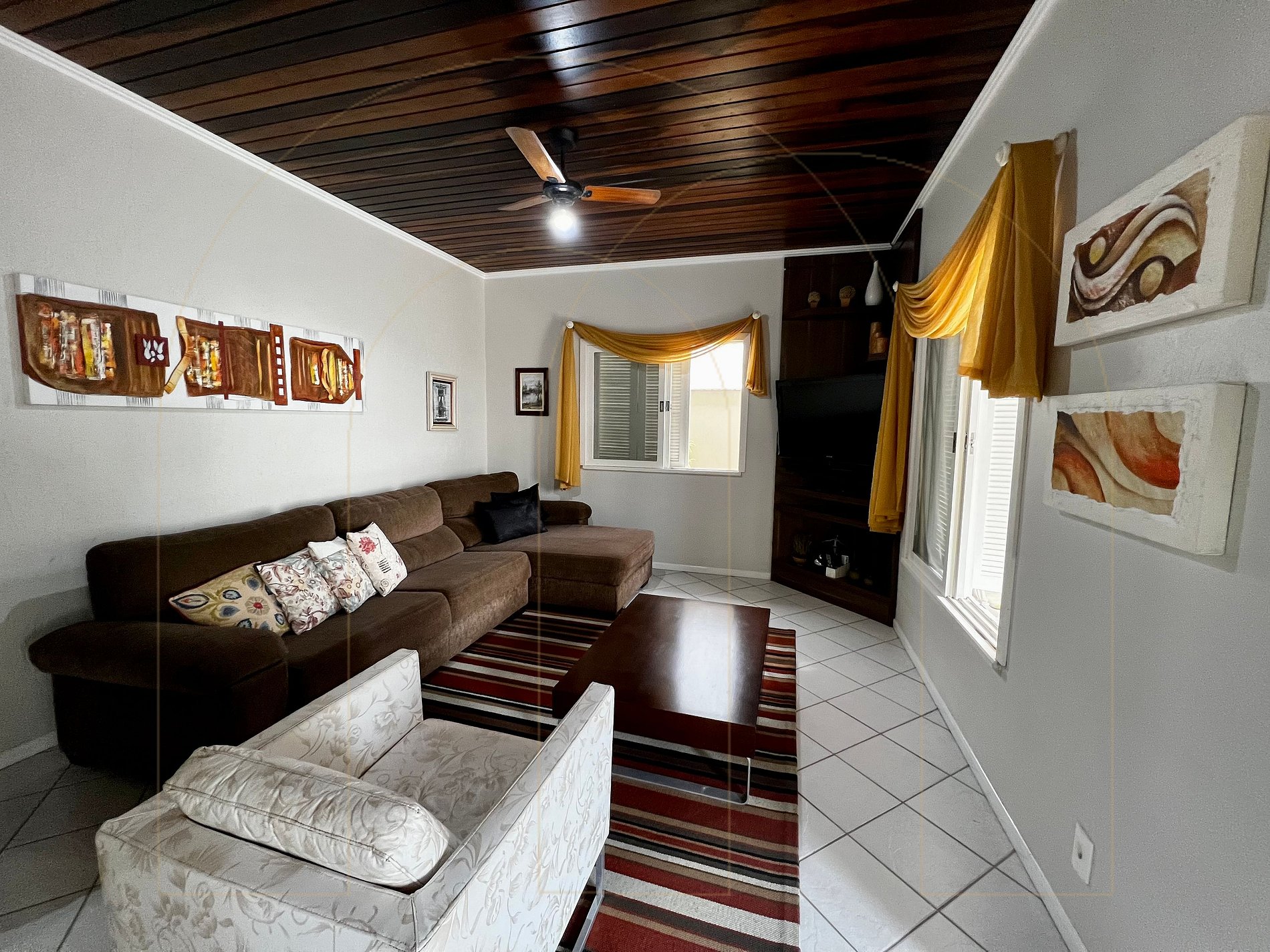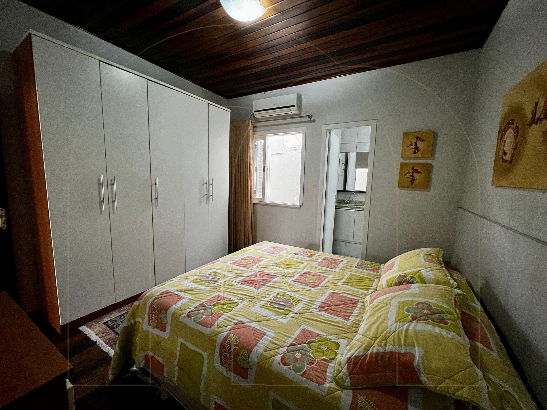 Casa de 04 dormitórios com Ar condicionado, 03 banheiros, cozinha, sala de jantar, sala de estar com televisor.