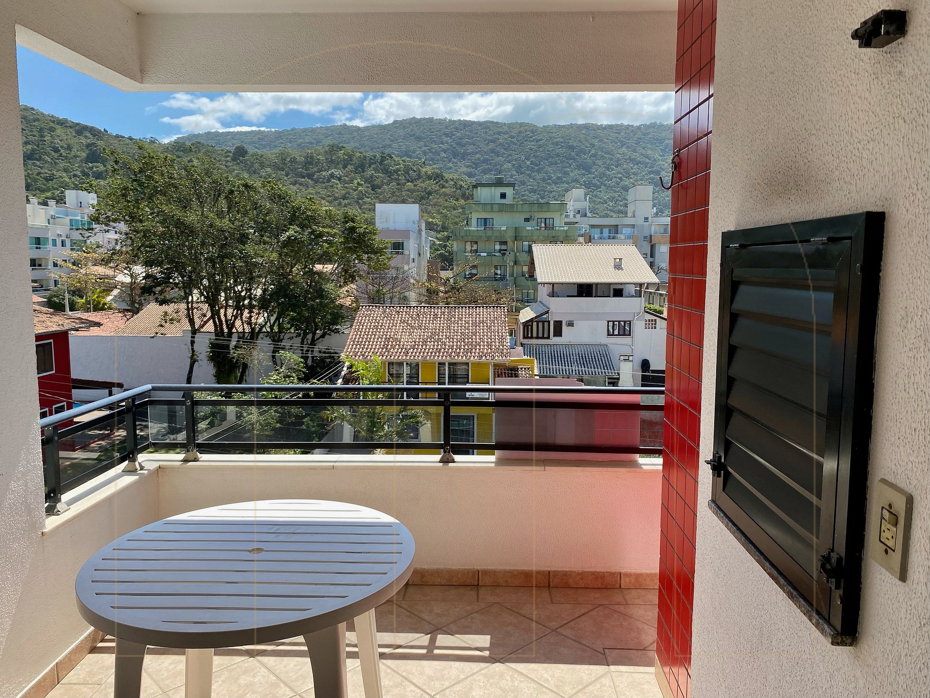 Apartamento de 02 dormitórios com ar condicionado sendo 01 suíte, 02 banheiros( da suíte + social completo), cozinha, sala de estar com televisor, área de serviço com máquina de lavar, sacada com churrasqueira.