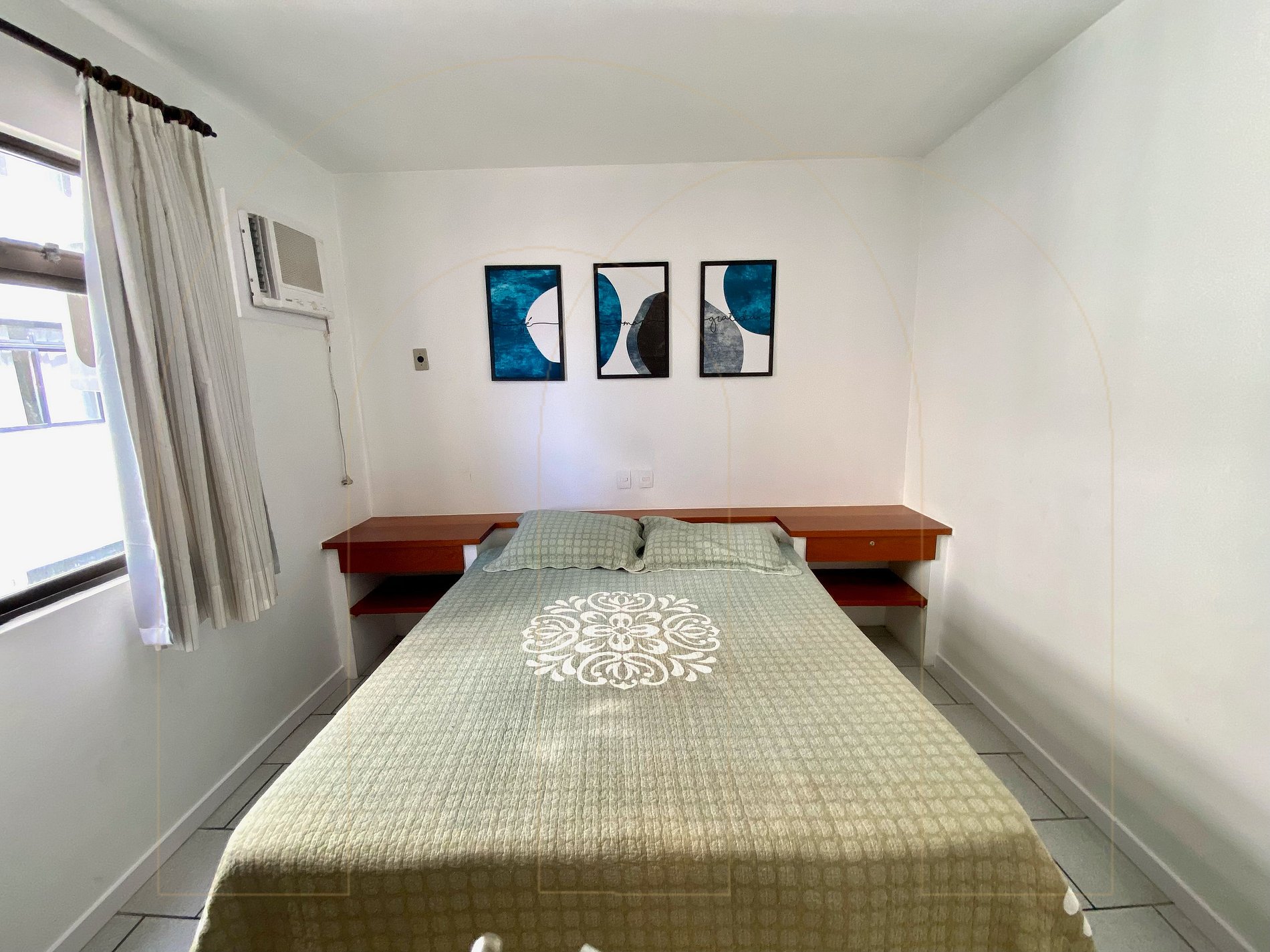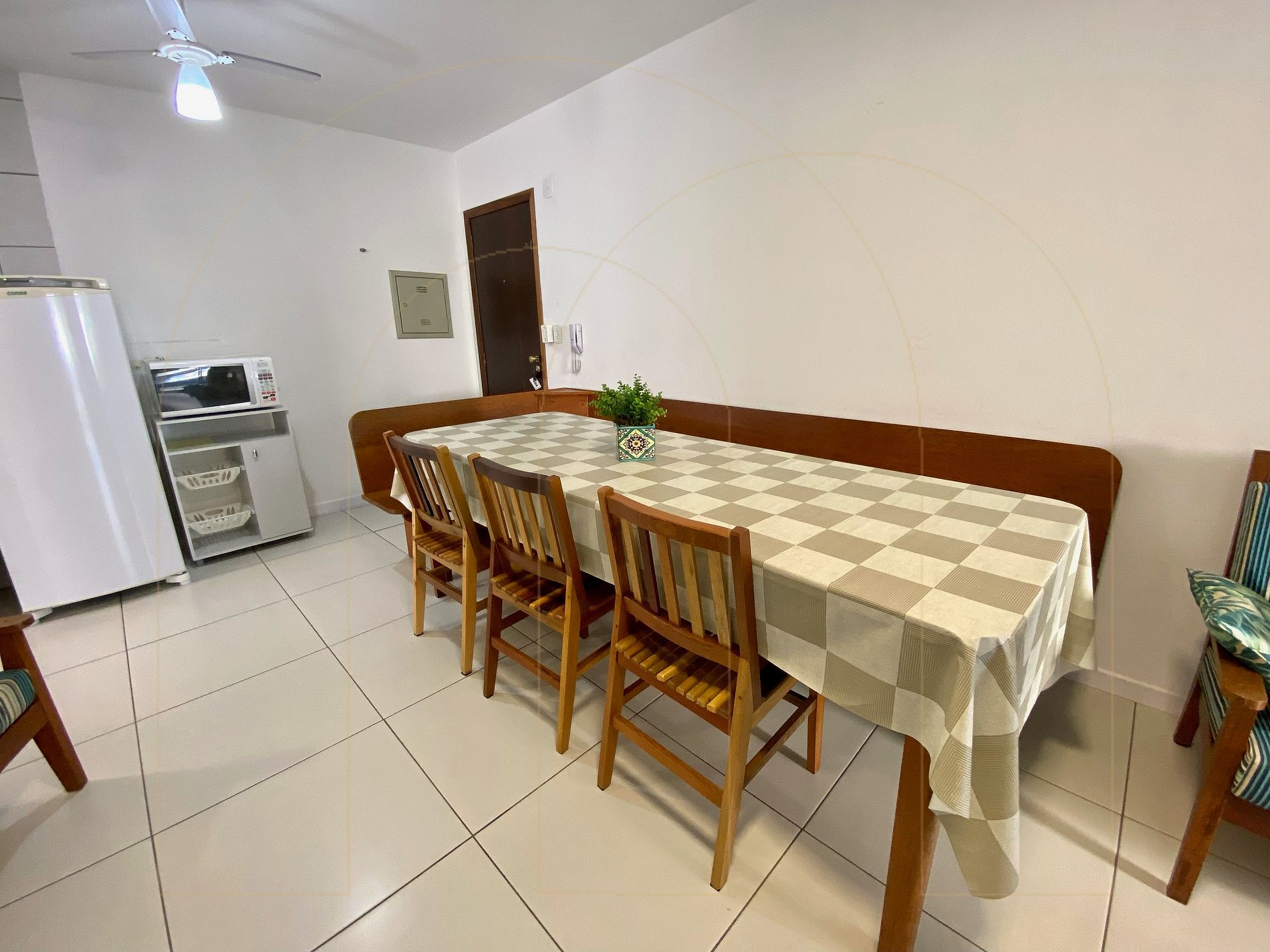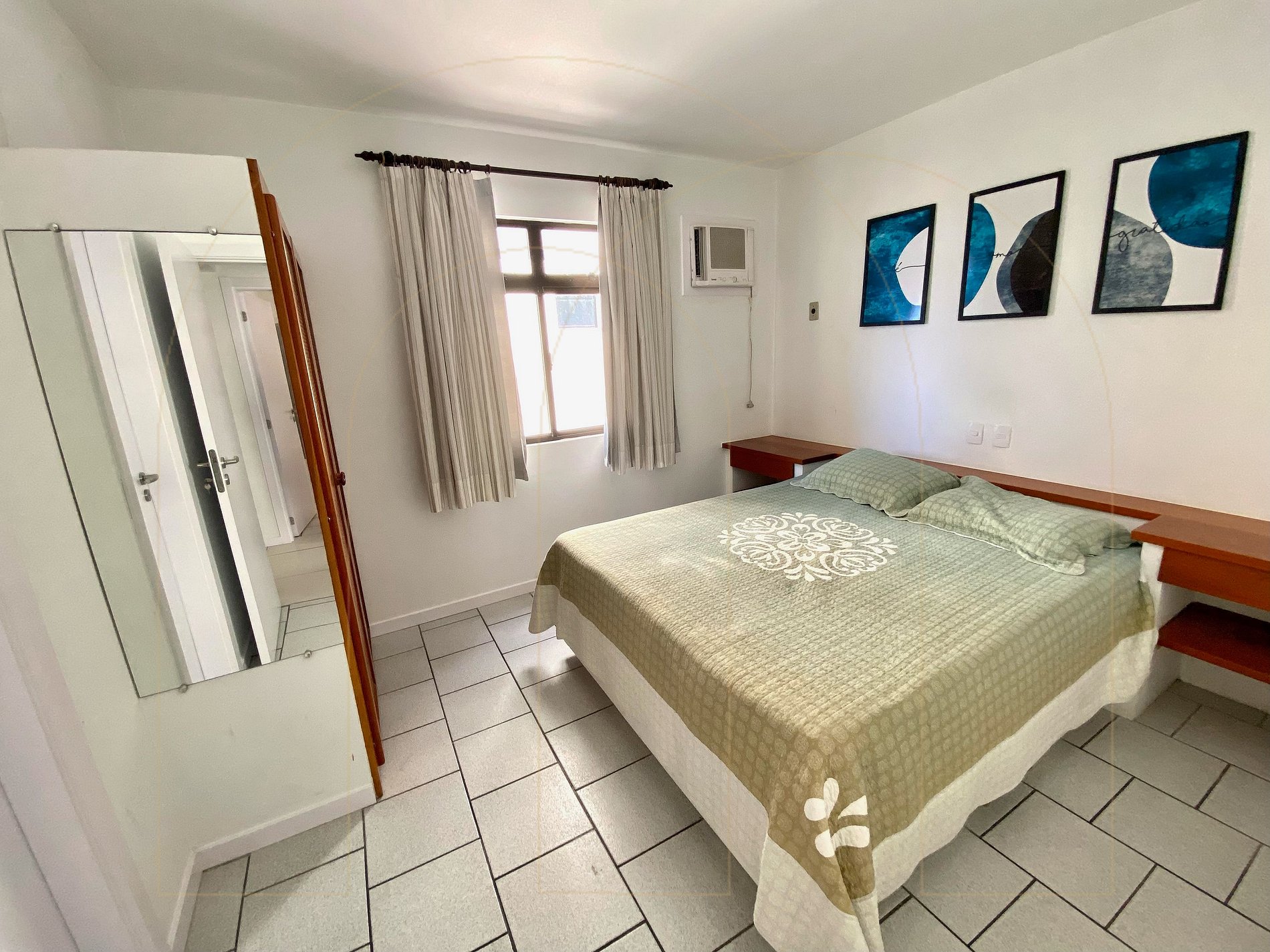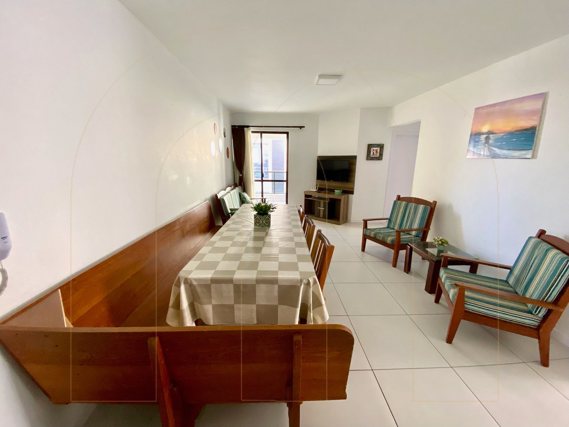 Apartamento 02 dormitórios com ar condicionado sendo 01 suíte, 02 banheiros, cozinha completa, área de serviço com máquina de lavar, sala de estar com televisor, sacada com churrasqueira.