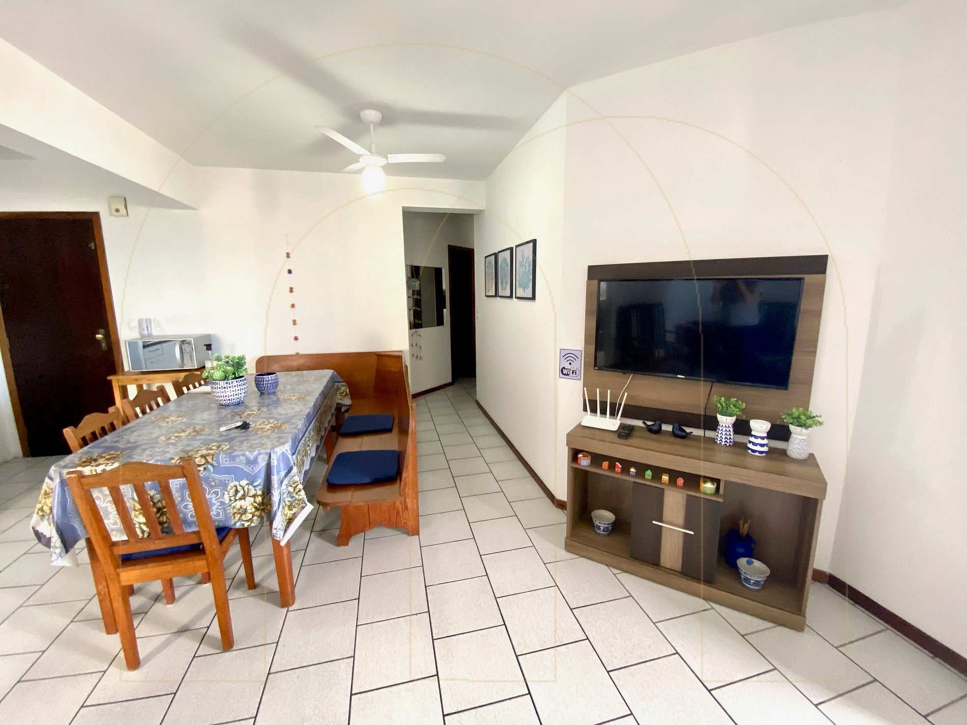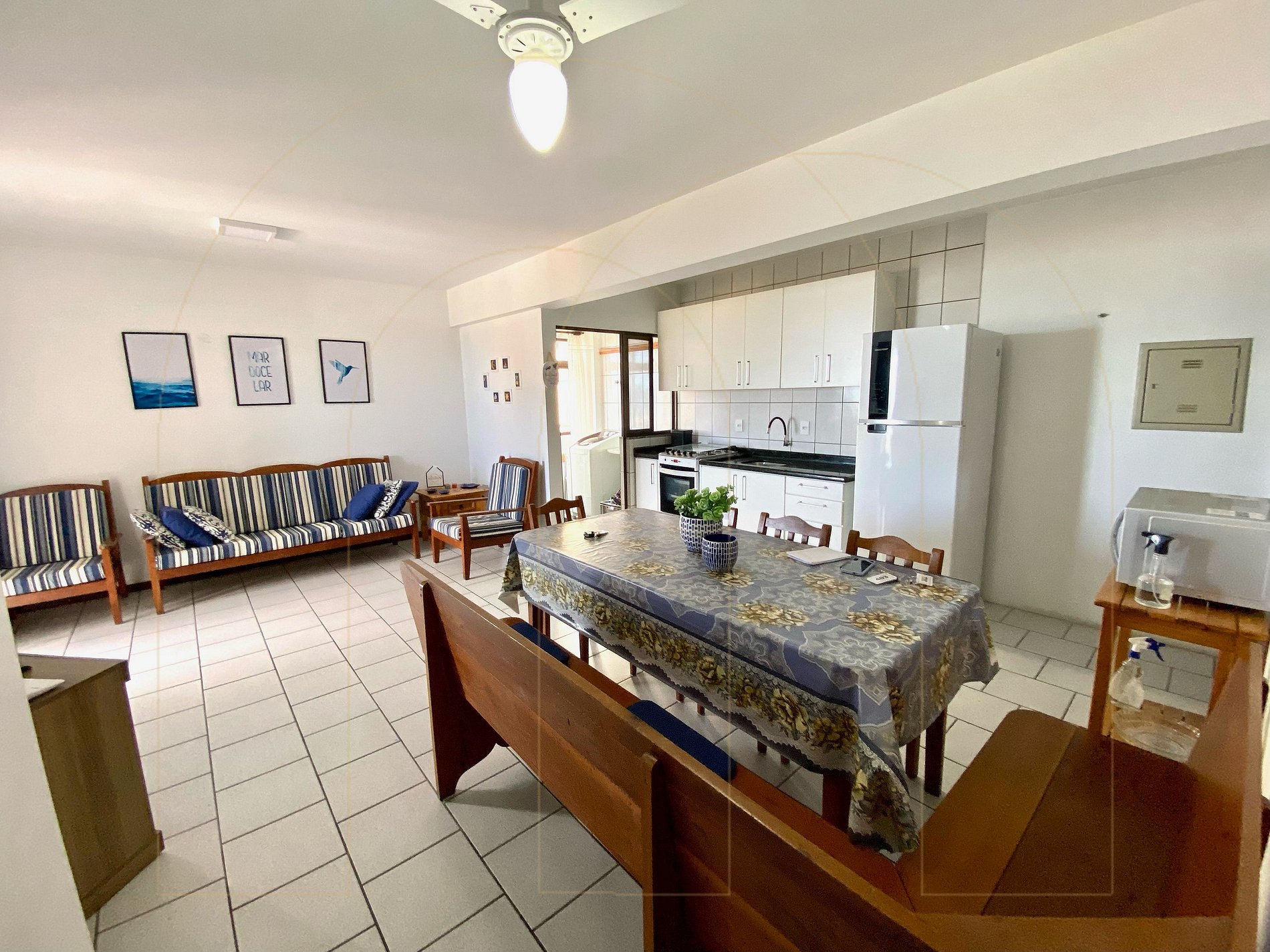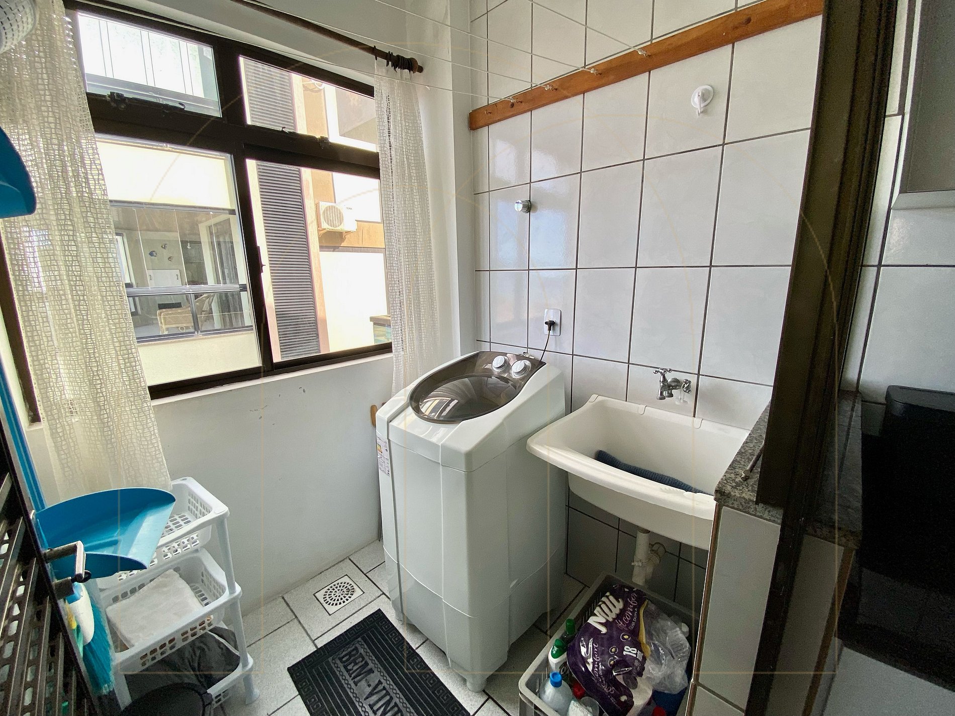 Apartamento 02 dormitórios com ar condicionado sendo 01 suíte, 02 banheiros, cozinha completa, área de serviço com máquina de lavar, sala de estar com televisor, sacada com churrasqueira.
