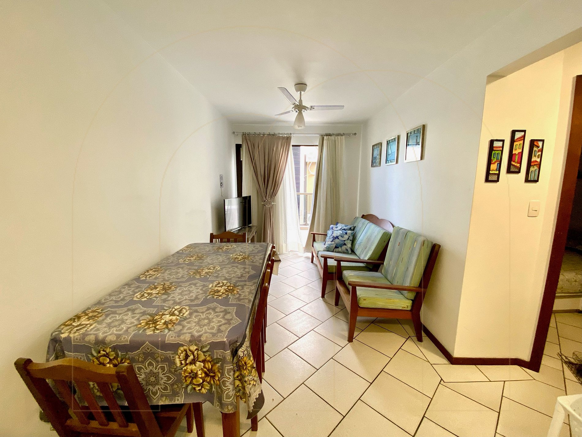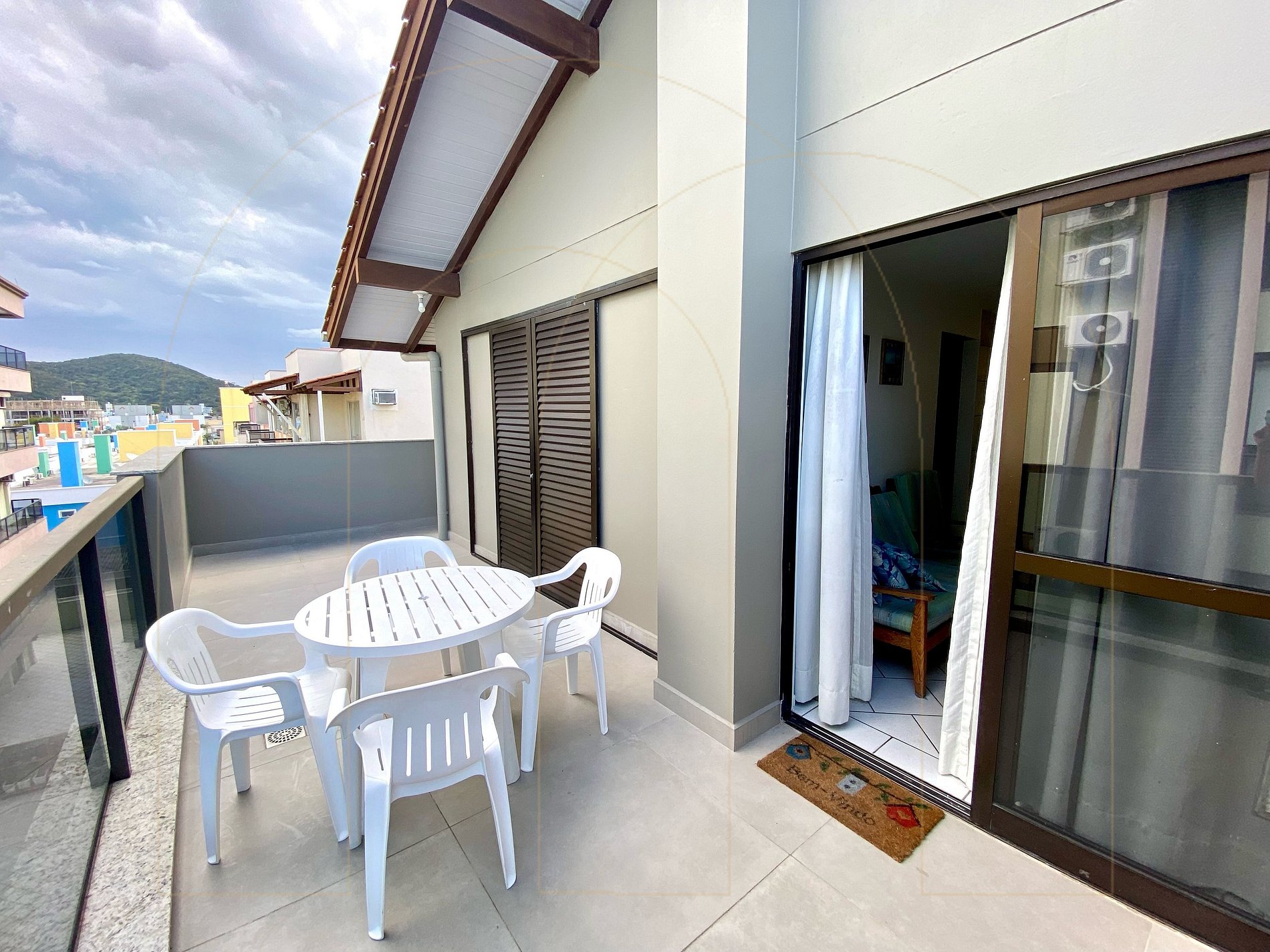 Cobertura de 02 dormitórios com ar condicionado sendo 01 suíte, 02 banheiros, cozinha completa, área de serviço com máquina de lavar, sala de estar com televisor, sacada com churrasqueira.