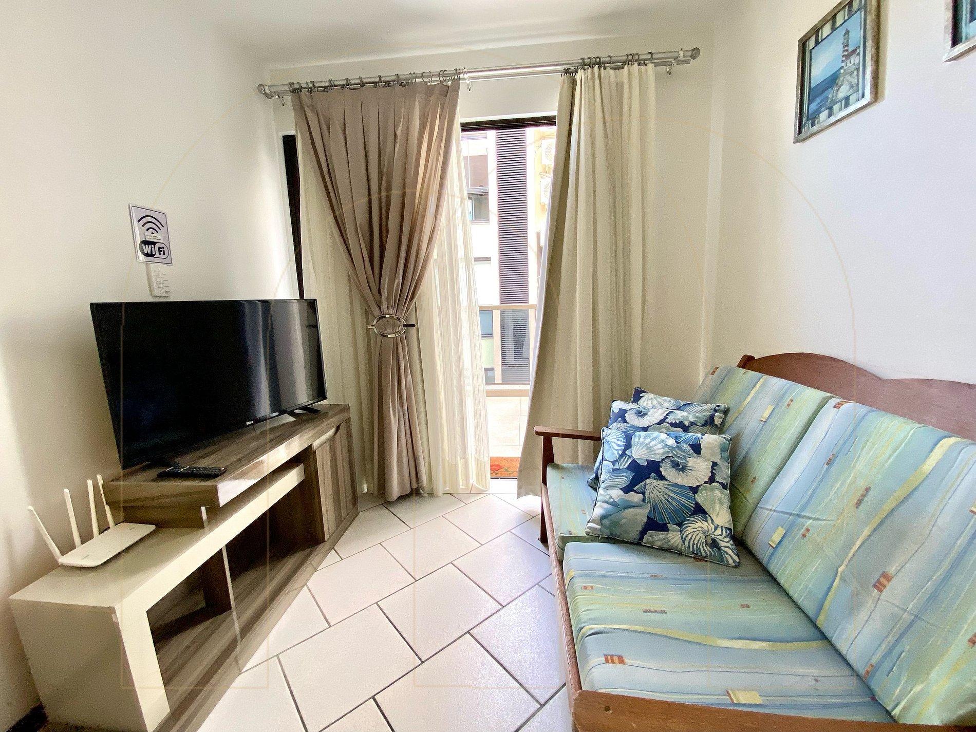 Cobertura de 02 dormitórios com ar condicionado sendo 01 suíte, 02 banheiros, cozinha completa, área de serviço com máquina de lavar, sala de estar com televisor, sacada com churrasqueira.