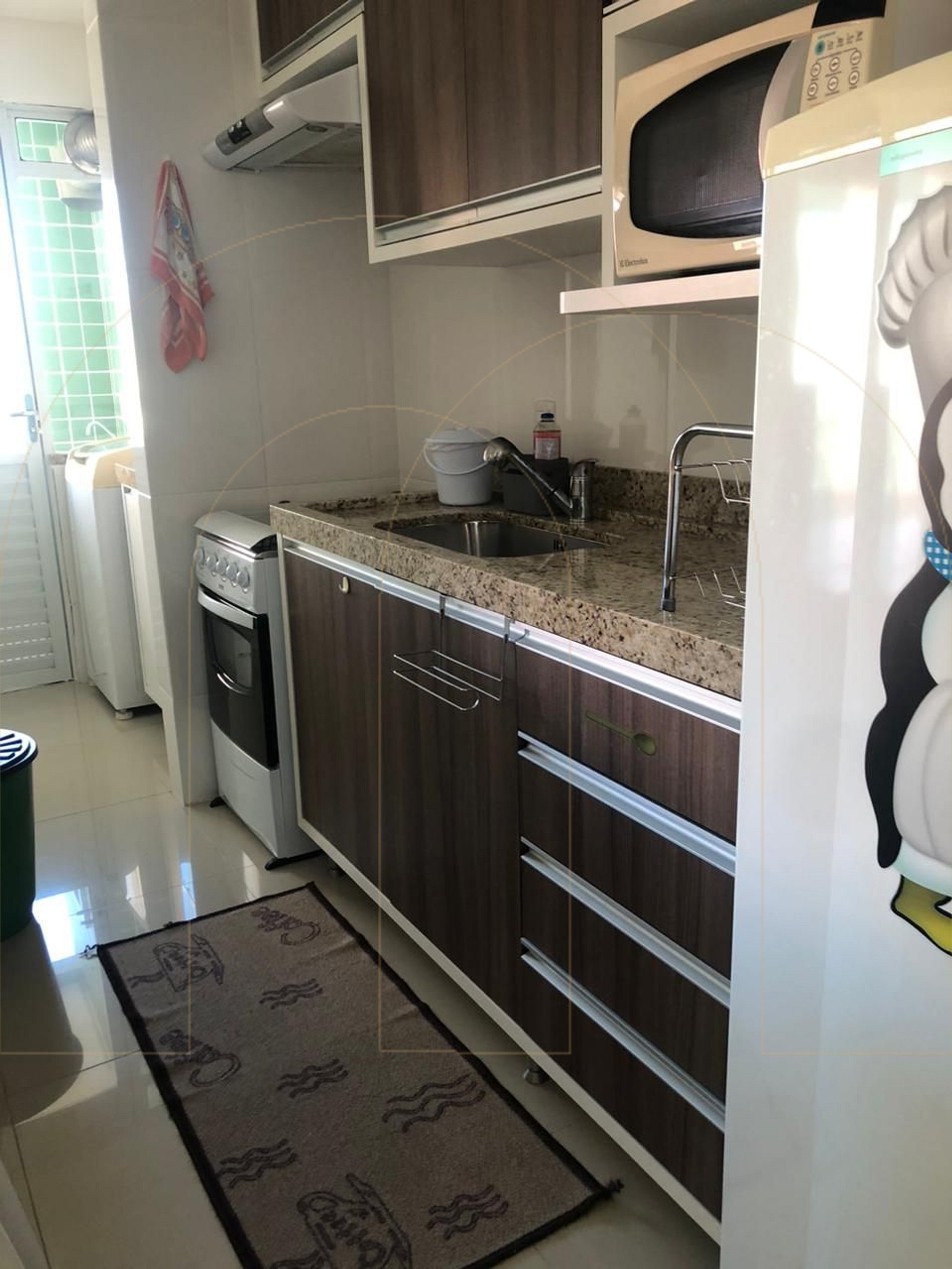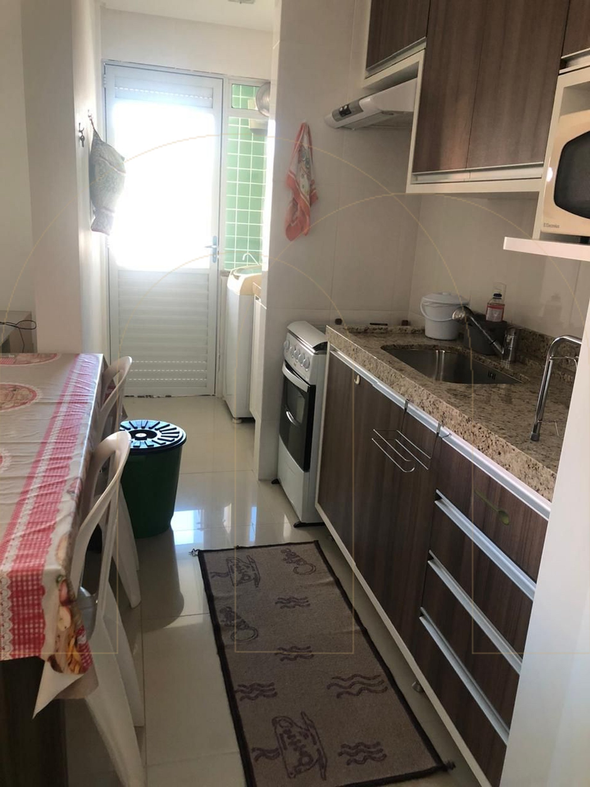 Sala de estar e jantar integradas, Sacada ampla com churrasqueira, Cozinha completa, Área de serviço e Garagem privativa para 01 automóvel.